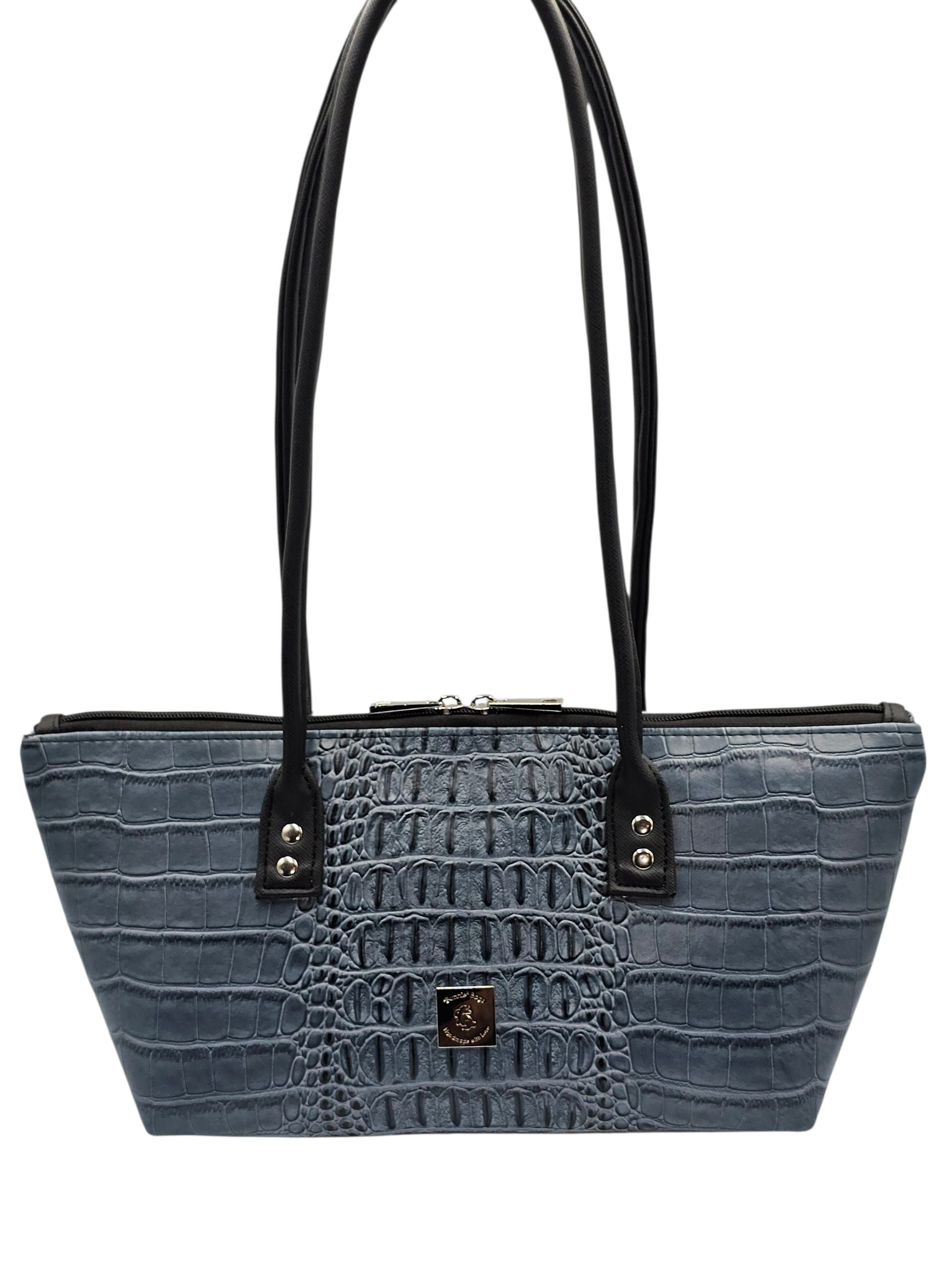 Horizon East West Shoulder Bag - Slate Blue Crocodile