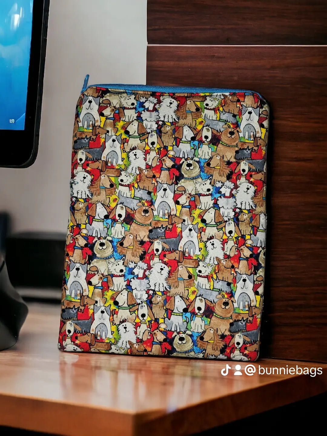 Padded tablet sleeve measures 12"x9". Use to protect your tablets, book or other small electronics. Handmade with 1/4" foam padding and a zipper enclosure to hold your items safe and secure. Designed to fit most standard tablets up to 11" screen size.