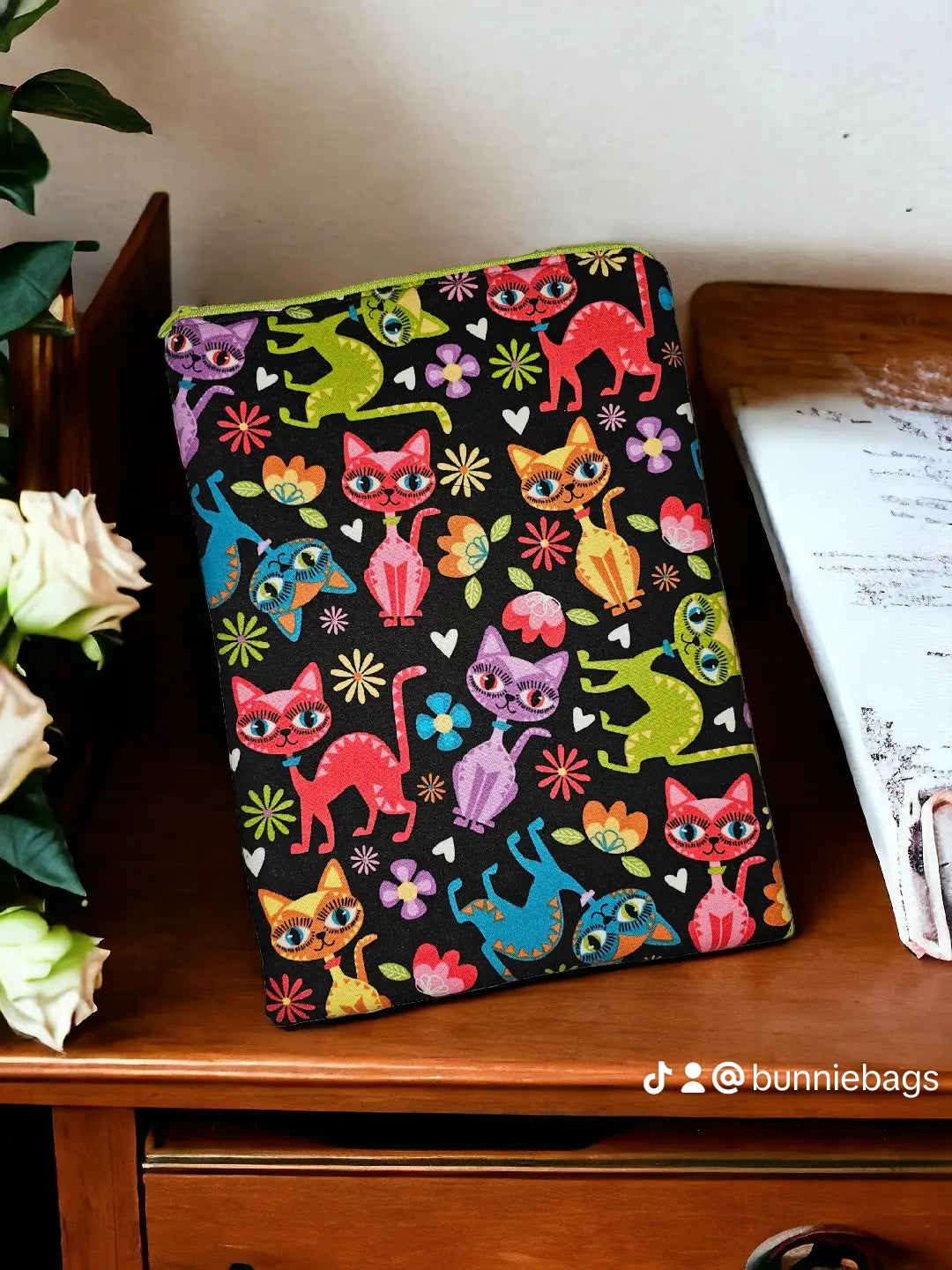 Padded tablet sleeve measures 12"x9". Use to protect your tablets, book or other small electronics. Handmade with 1/4" foam padding and a zipper enclosure to hold your items safe and secure. Designed to fit most standard tablets up to 11" screen size.