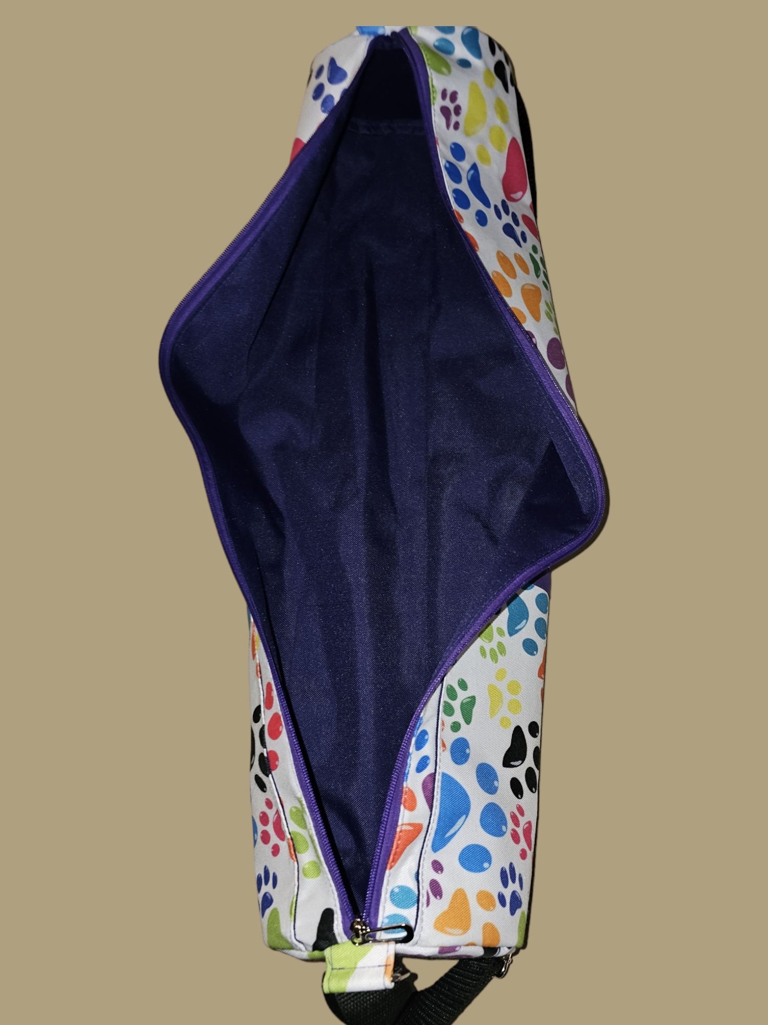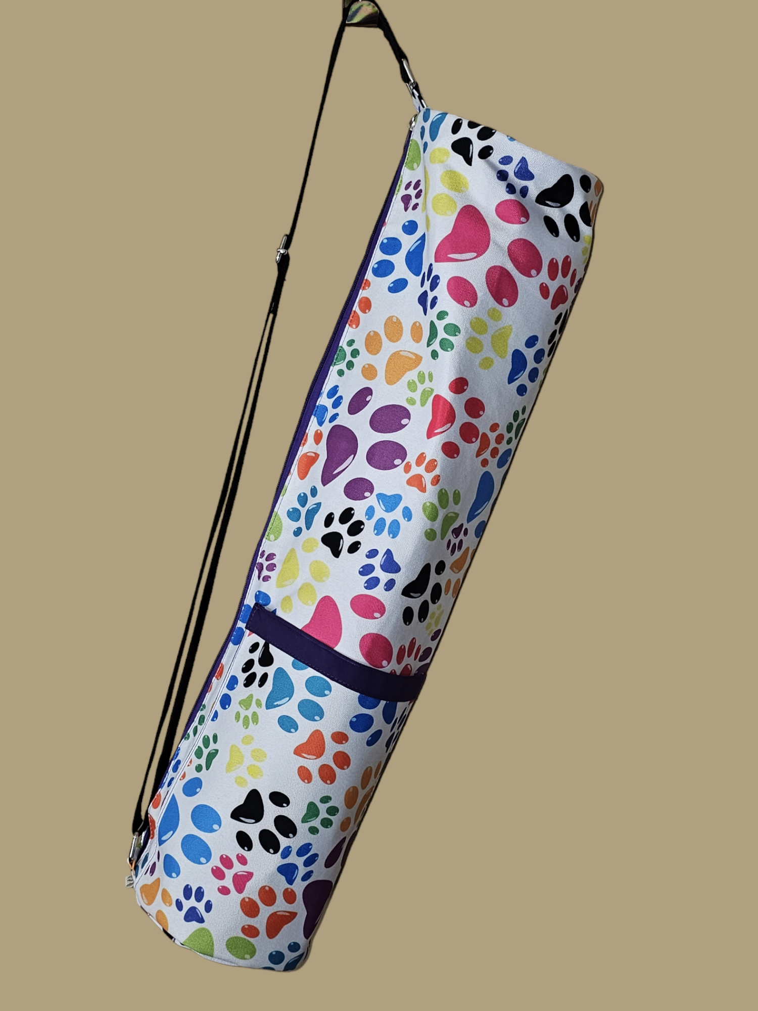 This is not your typical yoga mat bag. Made from waterproof outdoor fabric on the outside and lined with waterproof canvas on the inside these bags are made for strength and durability. Designed to fit a standard yoga mat of 3mm up to 6mm. Leaving room for your extra. An extra external double pocket is added, for your keys, phone, protein bars. This Bag finished off with an a 1 1/2" wide adjustable strap, to fit over your shoulder comfortable.